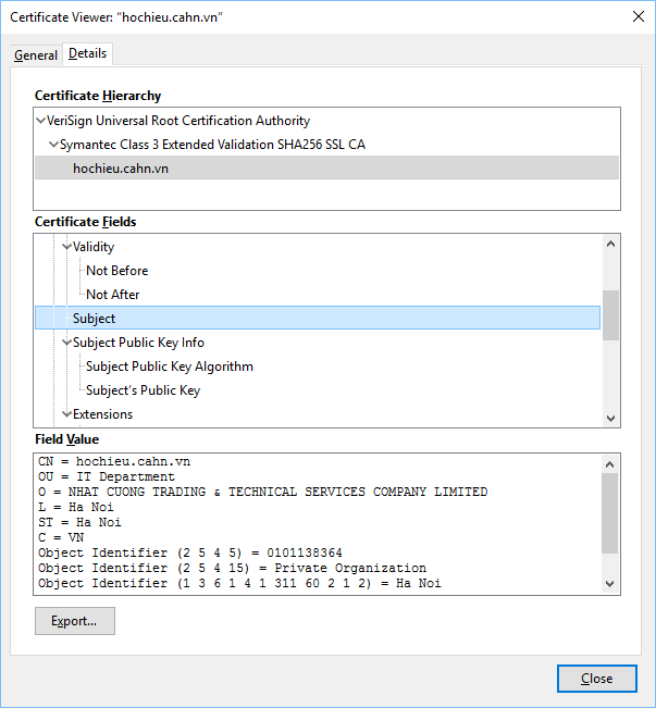 Như tiêu đề bài viết hôm nay mình có vào trang web của hochieu.cahn.vn để tham khảo cách làm hộ chiểu nhưng điều đặc biệt ở đây là chứng chỉ SSL của website đang hiển thị nhầm thông tin của Cty khác.